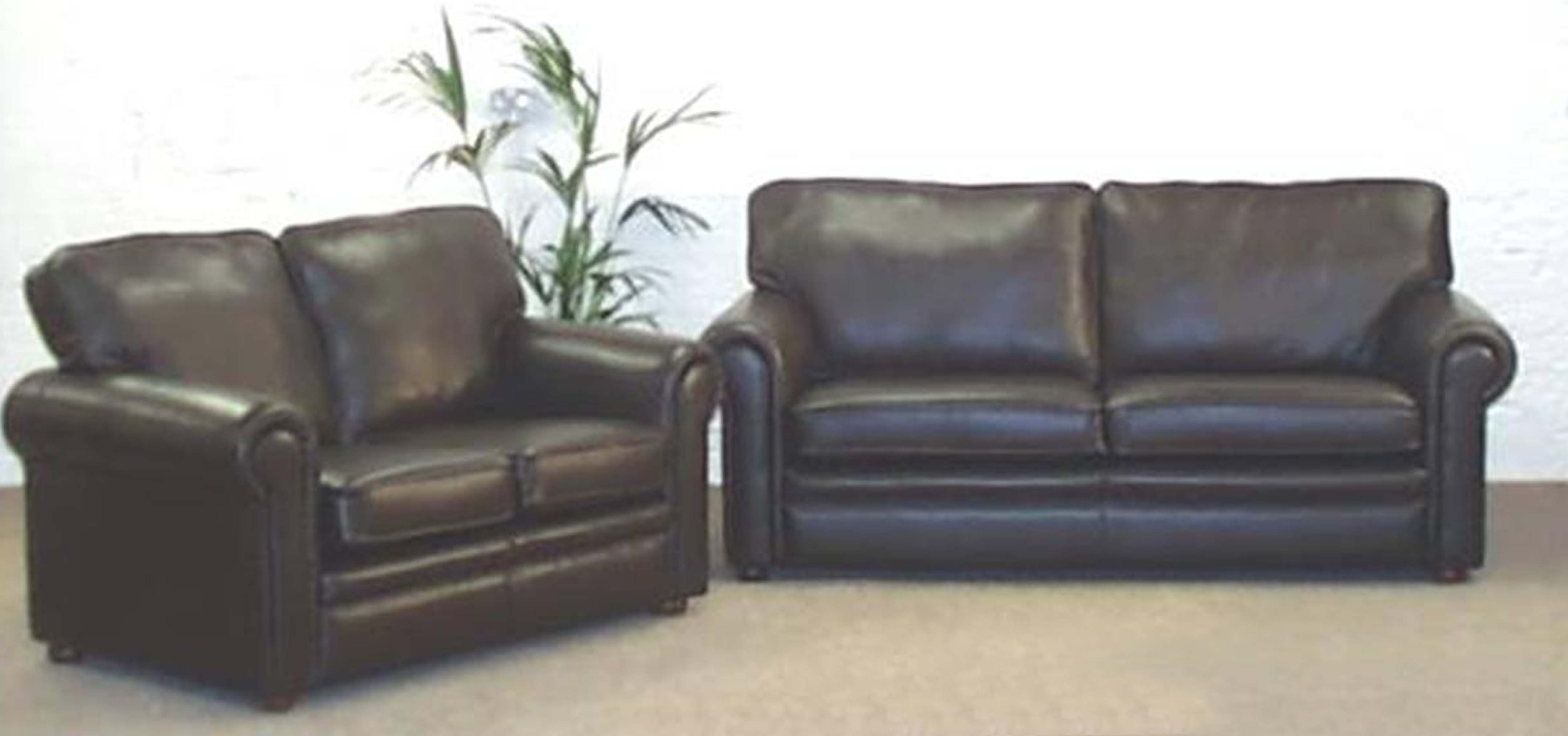 The Blenhiem 3str sofa & 2str sofa in project brown leather. This is an ex showroom model reduced to clear.